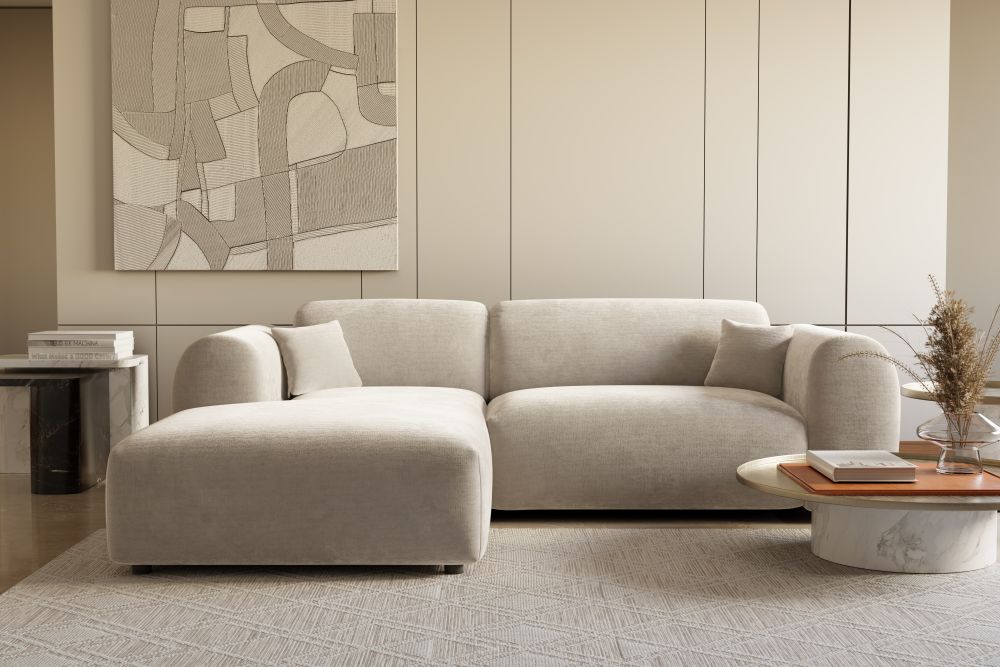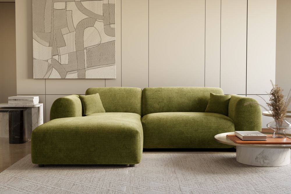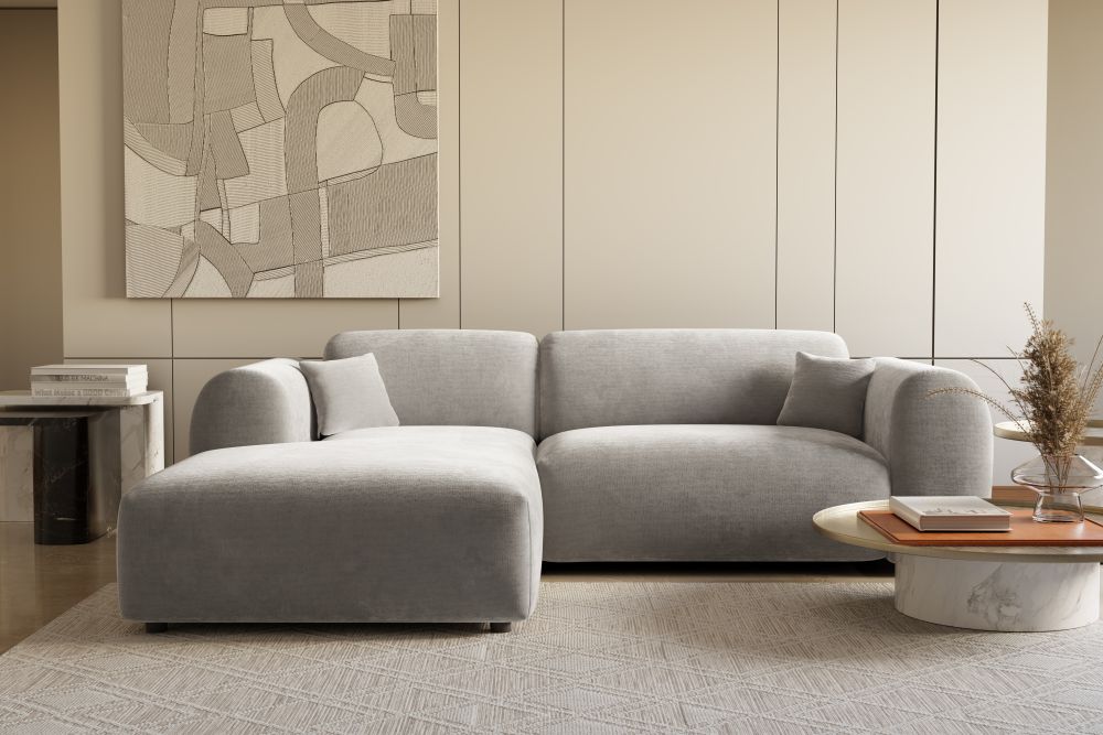 Solidna konstrukcja oparta na drewnianym stelażu i płycie wiórowej w połączeniu ze sprężynami falistymi typu A i pianką wysokosprężystą gwarantuje trwałość i doskonały komfort użytkowania. Rogówka jest wolnostojąca – wykończona tkaniną również z tyłu, dzięki czemu można ją ustawić w dowolnym miejscu salonu.