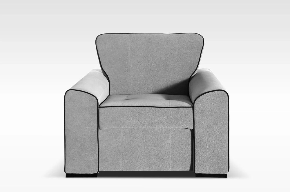 Siedzisko zostało wyposażone w sprężynę bonell oraz wysokiej jakości piankę T25, co gwarantuje odpowiednią sprężystość, odporność na odkształcenia i komfort użytkowania przez lata. Oparcie wypełnione pianką T21 zapewnia wygodne podparcie pleców, dzięki czemu fotel świetnie sprawdzi się podczas czytania, oglądania telewizji czy spotkań z bliskimi.