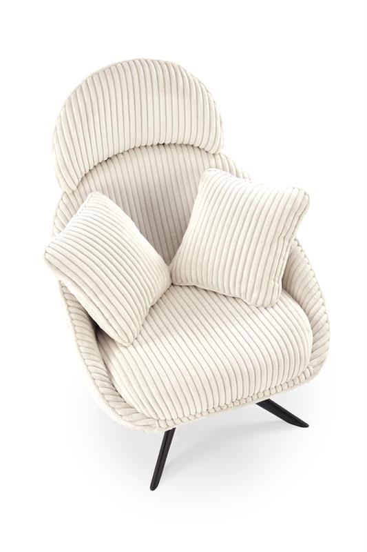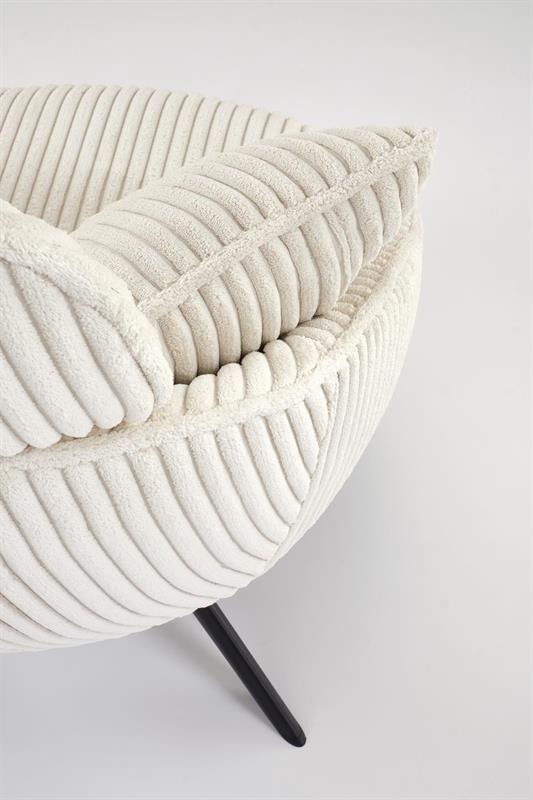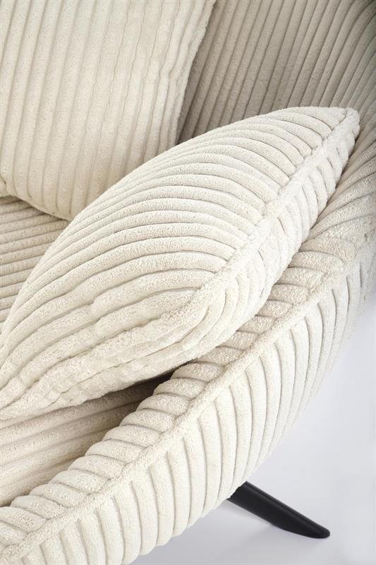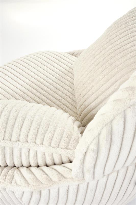 Model MARRY 2 wyróżnia się niezwykle miękkimi poduszkami, które otulają ciało i zapewniają maksymalny komfort siedzenia. Tapicerka wykonana z grubego sztruksu w kremowym kolorze nadaje fotelowi elegancki, a jednocześnie ciepły i domowy charakter. To doskonały wybór do salonu, sypialni, a nawet stylowego biura czy strefy relaksu.