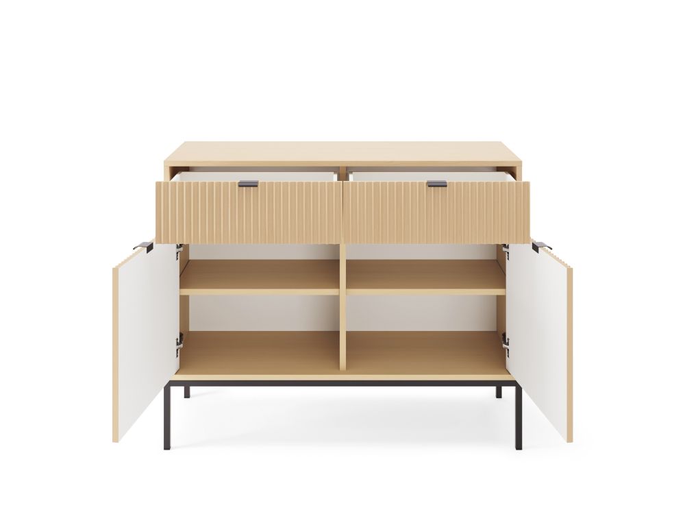 Dzięki przemyślanemu układowi szafek i szuflad, komoda oferuje wyjątkowo praktyczną przestrzeń do przechowywania dokumentów, tekstyliów, zastawy lub drobiazgów, pomagając utrzymać porządek w każdym wnętrzu. To idealne połączenie wygody i estetyki – bez kompromisów.