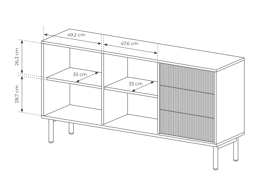 Dzięki systemowi push-to-open otwieranie szuflad i drzwi staje się wygodne i bezuchwytowe, co podkreśla minimalistyczny design. Solidne wykonanie – od obrzeży ABS, przez prowadnice kulkowe z pełnym wysuwem, aż po drewniane nogi o wysokości 20 cm – gwarantuje trwałość oraz codzienny komfort użytkowania.
