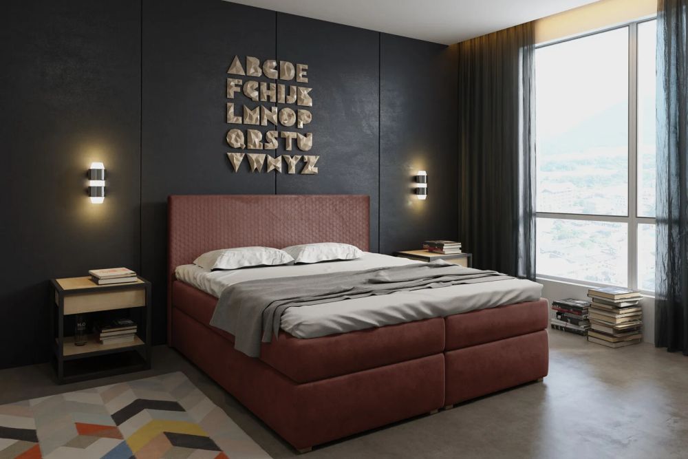 To nowoczesne łóżko kontynentalne 160×200 doskonale sprawdzi się w sypialni pary, zapewniając dużą i wygodną powierzchnię do codziennego odpoczynku. Charakterystyczna, elegancka bryła oraz wysokie, miękko tapicerowane wezgłowie nie tylko podkreślają prestiżowy wygląd mebla, ale również zwiększają wygodę podczas wieczornego czytania książki czy oglądania telewizji.