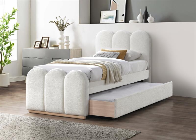 - Typ: łóżko tapicerowane z wysuwanym dolnym materacem