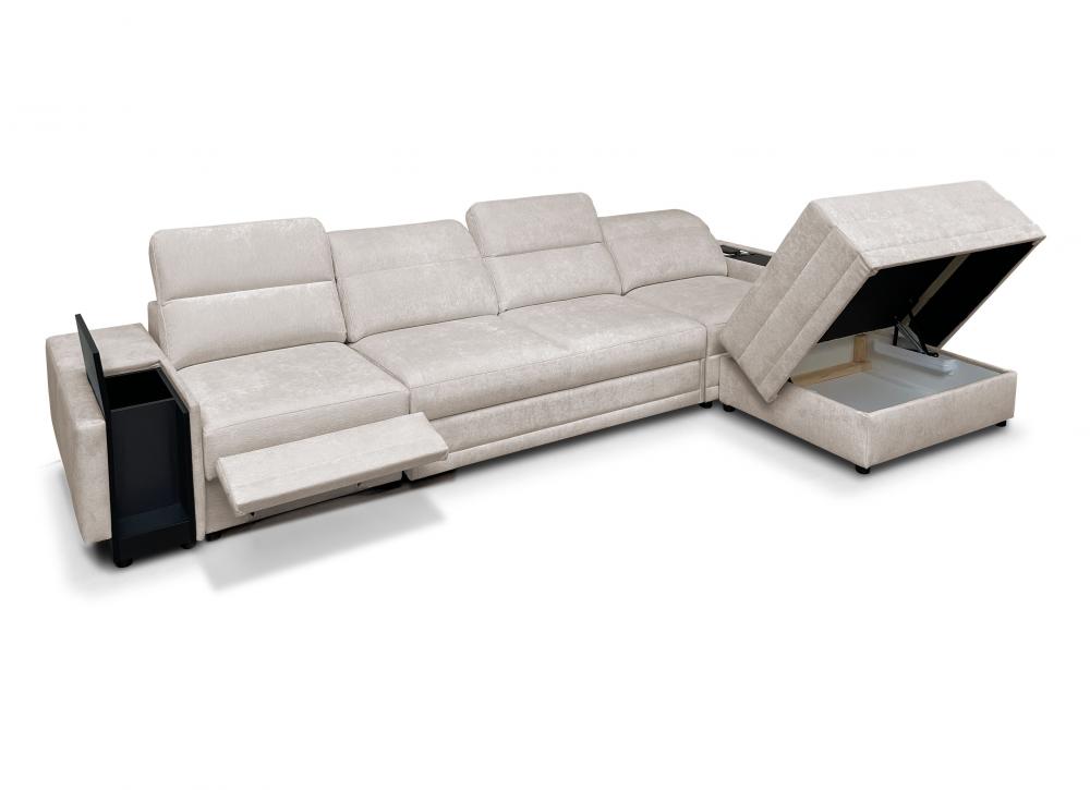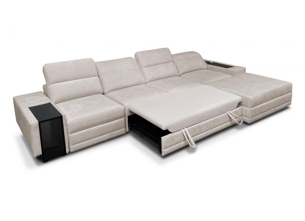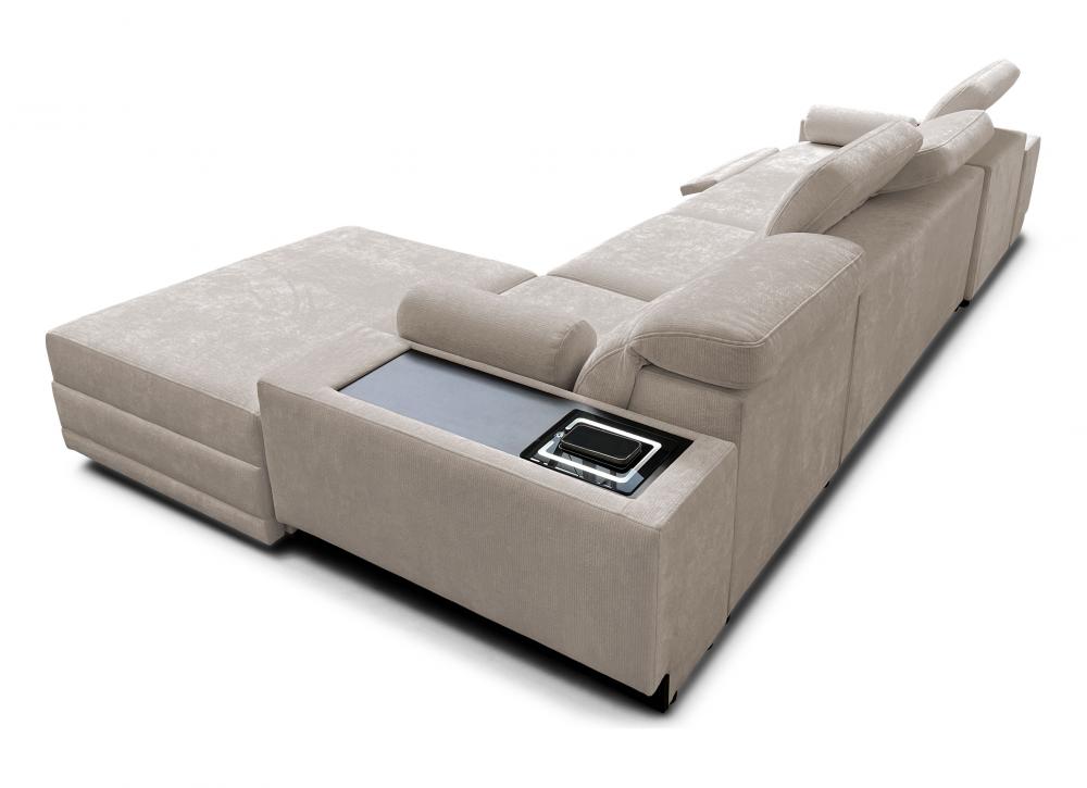 Luksusowa kanapa narożna do spania z barkiem ładowarką telefonu i podnóżkiem ASTON 12 MIX