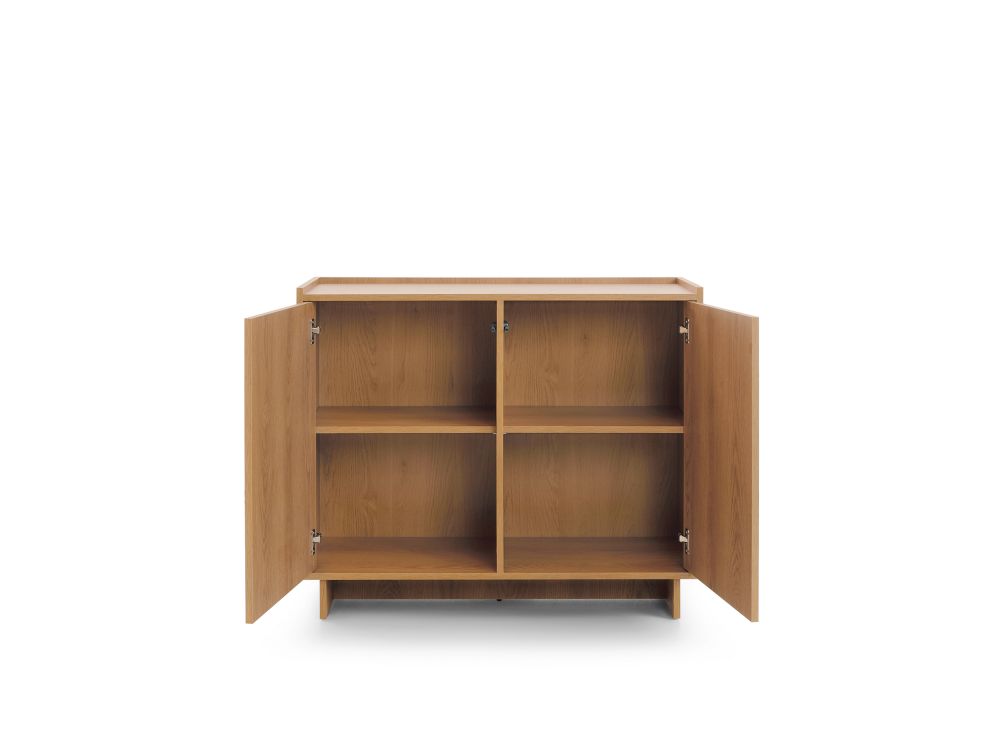Komoda CARAMELLO została zaprojektowana z myślą o codziennym komforcie. Otwierane drzwi pozwalają na łatwy dostęp do wnętrza, w którym bez problemu przechowasz dokumenty, tekstylia, akcesoria czy inne niezbędne przedmioty. Dzięki kompaktowym wymiarom mebel doskonale sprawdzi się również w mniejszych pomieszczeniach, nie przytłaczając przestrzeni.