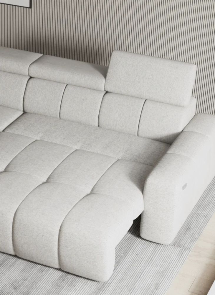 Ten narożnik to prawdziwa definicja relaksu. Elektrycznie rozkładane siedzisko z funkcją spania pozwala w kilka chwil przemienić go w komfortowe łóżko o powierzchni 120 × 228 cm. Dzięki regulowanej głębokości siedziska (64–120 cm) oraz ruchomym zagłówkom, możesz dopasować pozycję do swoich potrzeb — od idealnego podparcia w trakcie rozmowy, po odprężającą pozycję do oglądania filmu.