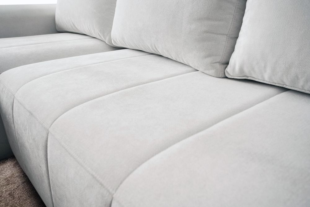 Mebel został zaprojektowany jako wolnostojący, co oznacza, że jego tył również jest obity tkaniną – możesz ustawić go w dowolnym miejscu pokoju, tworząc funkcjonalną i estetyczną strefę wypoczynku. Dodatkowo możesz wybrać stronę narożnika podczas składania zamówienia, dopasowując go idealnie do swojego wnętrza.
