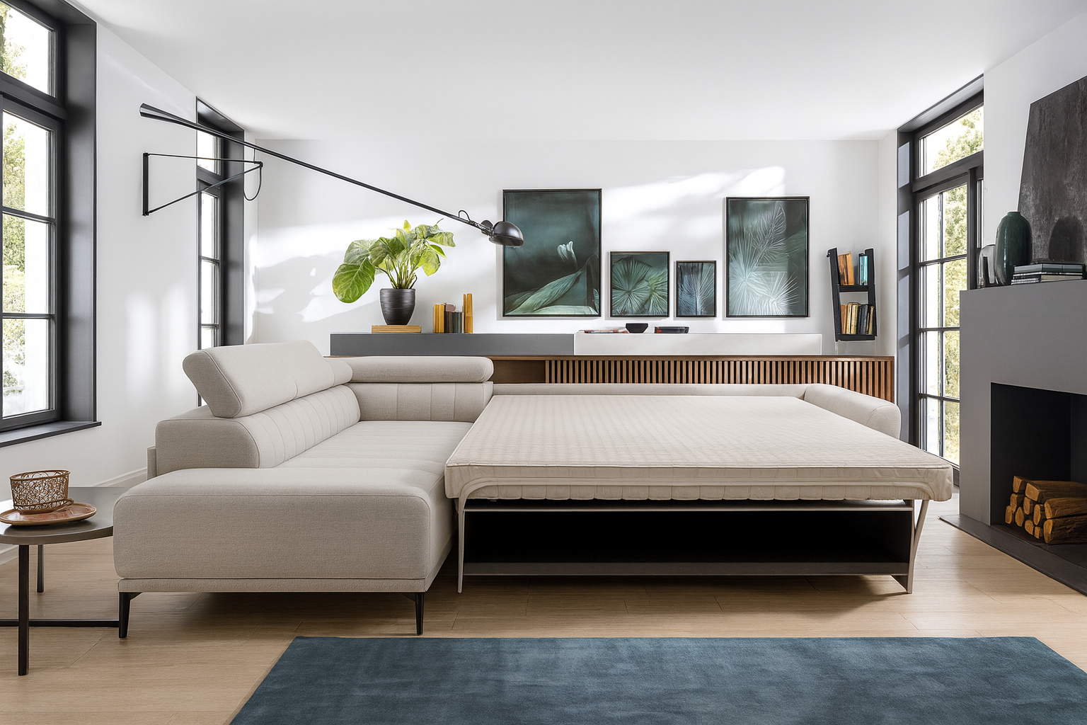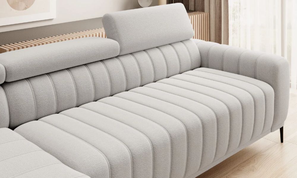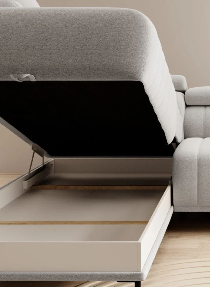 Dzięki zastosowaniu systemu włoskiego, narożnik stelaż włoski AURELIO rozkłada się wyjątkowo lekko i płynnie, tworząc pełnowymiarową powierzchnię spania 160×200 cm. To idealna opcja dla osób, które chcą komfortowego noclegu bez kompromisów. Dodatkowy pojemnik na pościel oraz pięciostopniowe regulowane zagłówki dopełniają funkcjonalny charakter mebla, czyniąc go doskonałym wyborem do salonu nowoczesnego, rodzinnego lub premium.