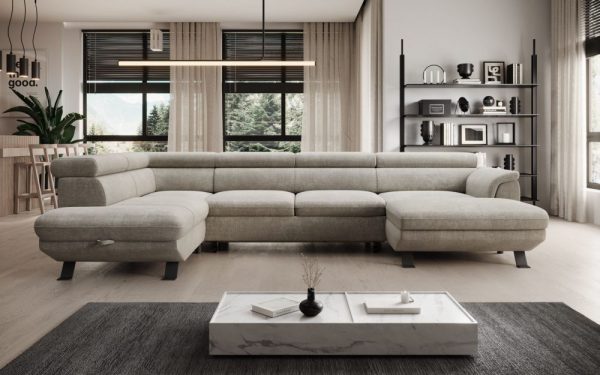 RENZO 3 to wyjątkowy narożnik, który łączy komfort codziennego użytkowania z nowoczesną estetyką i solidnym wykonaniem. Jego przestronna forma w kształcie litery U stworzona została z myślą o rodzinnych chwilach relaksu i wieczorach pełnych wygody.