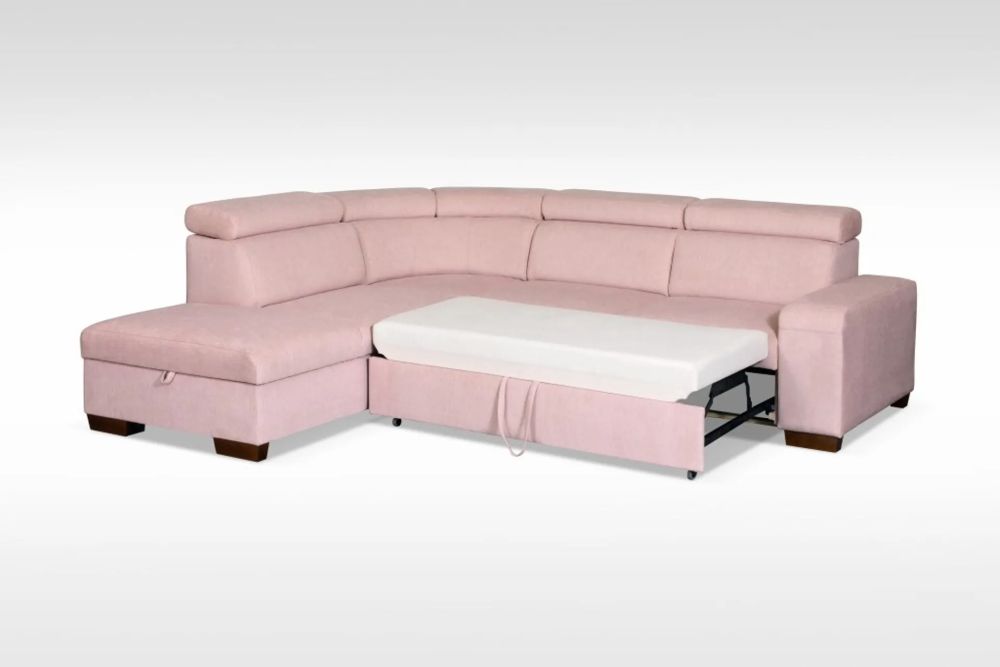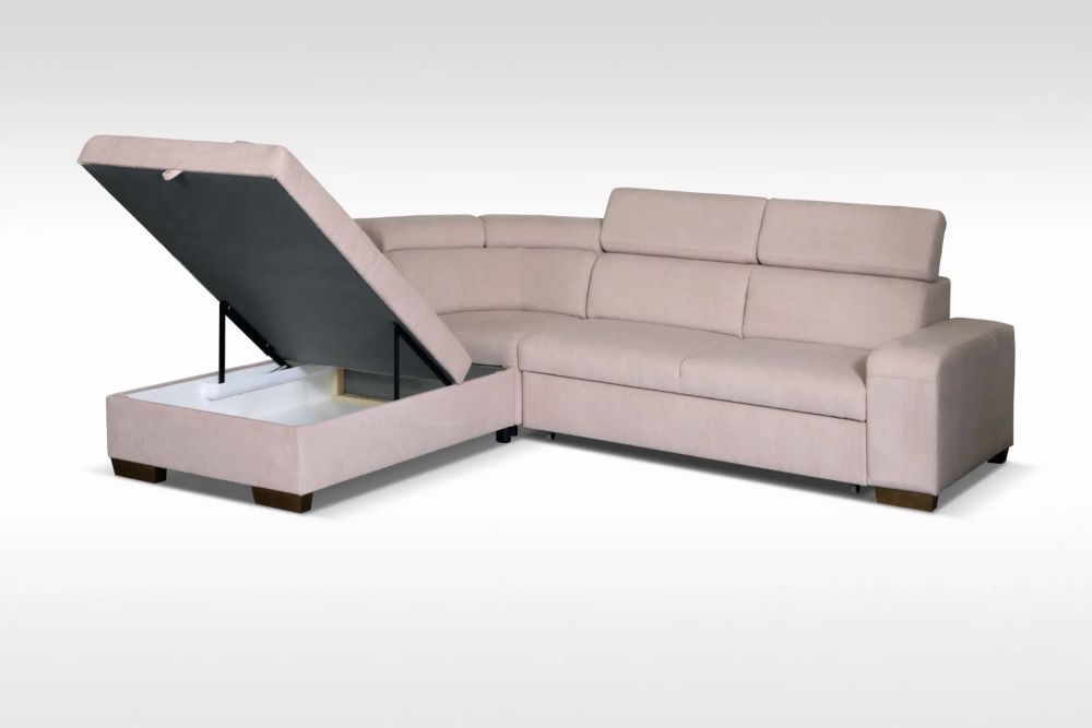 Narożnik DIAMANTE 3 wyposażony jest w wygodną funkcję spania typu wózek, która umożliwia szybkie i bezproblemowe rozłożenie powierzchni o wymiarach 125×205 cm. To praktyczne rozwiązanie sprawdzi się podczas wizyt gości lub jako dodatkowe miejsce do codziennego wypoczynku. Dodatkowym atutem jest pojemnik na pościel, który ułatwia utrzymanie porządku w salonie.