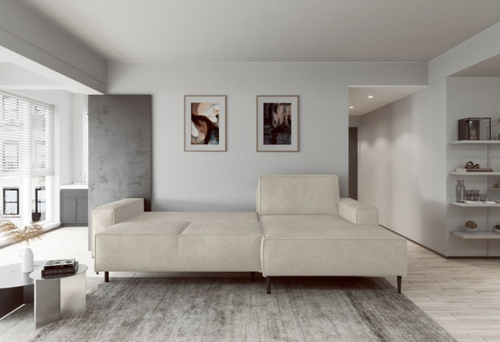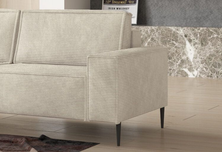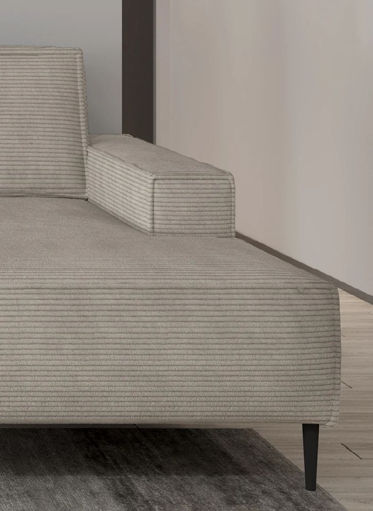 Jego minimalistyczna forma w kształcie litery L subtelnie wpisuje się w stylistykę nowoczesną i loftową, a wysokie, metalowe nogi dodają konstrukcji lekkości i wysmakowanego charakteru. Smukła linia i starannie zaprojektowane proporcje sprawiają, że HESTIA świetnie prezentuje się zarówno w przestronnych salonach, jak i bardziej kompaktowych aranżacjach.
