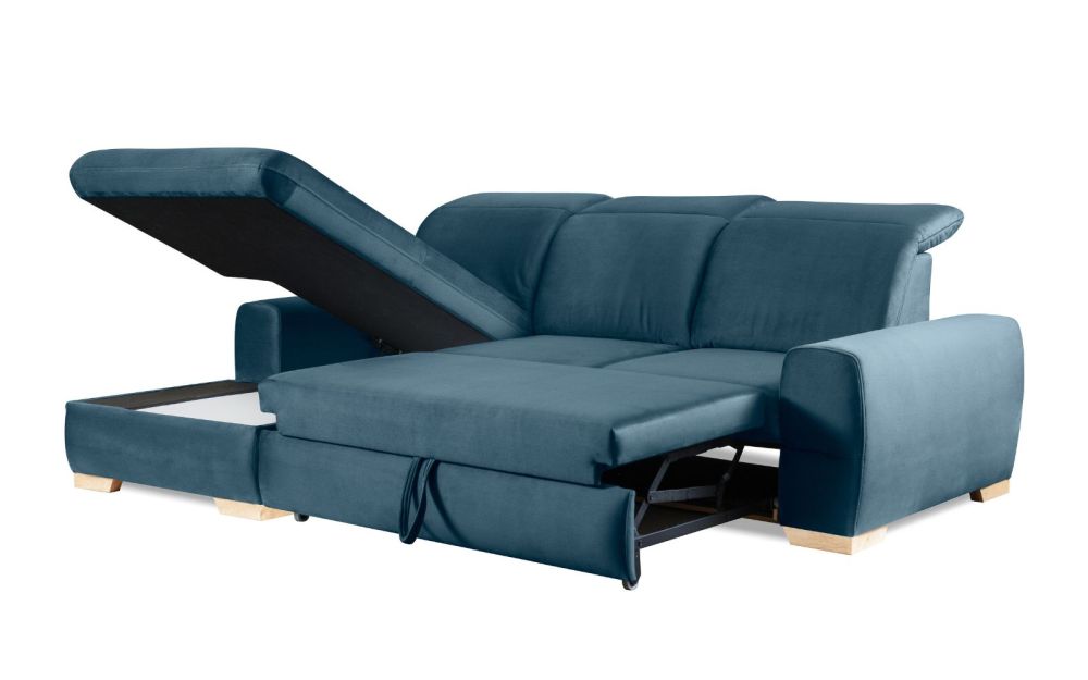 Regulowane zagłówki oraz możliwość regulacji głębokości siedzisk pozwalają idealnie dopasować narożnik do indywidualnych potrzeb.