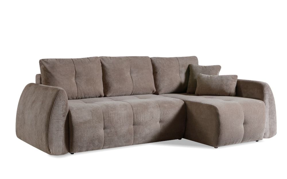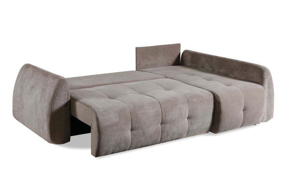 Model został wyposażony w funkcję spania codziennego z wygodnym systemem rozkładania DL, dzięki czemu w kilka chwil zamienisz narożnik w komfortowe łóżko. Praktyczny pojemnik na pościel ułatwia przechowywanie i pomaga zachować porządek. Uniwersalny charakter narożnika pozwala na montaż w wersji lewej lub prawej, dopasowując go idealnie do układu pomieszczenia.