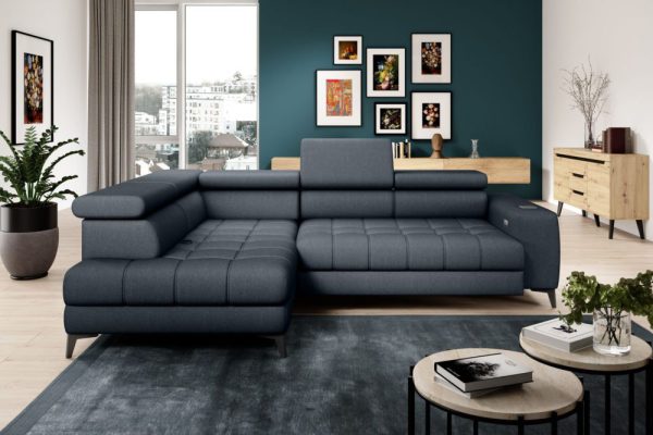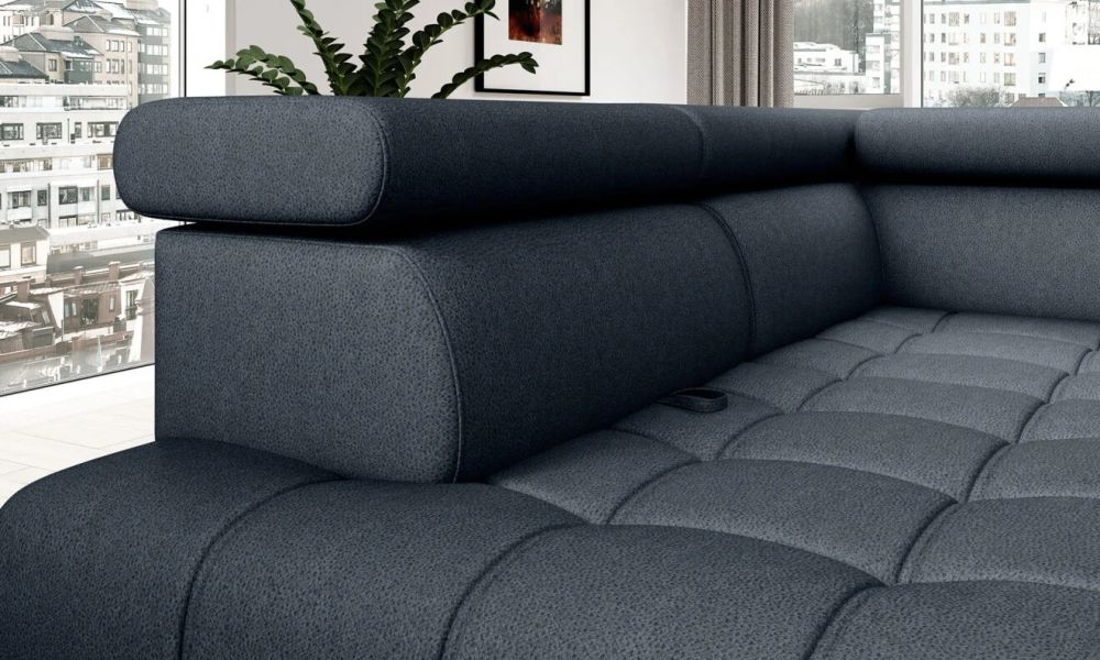Wnętrze narożnika wypełniono sprężynami falistymi i pianką tapicerską o średniej twardości, co gwarantuje doskonałe podparcie i trwałość użytkowania. Każdy detal wykonano z precyzją i dbałością o estetykę, wykorzystując najwyższej jakości tkaniny – miękkie, odporne na ścieranie i dostępne w szerokiej gamie kolorów oraz faktur.
