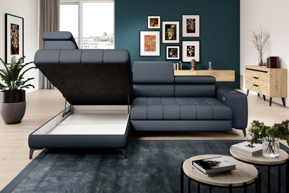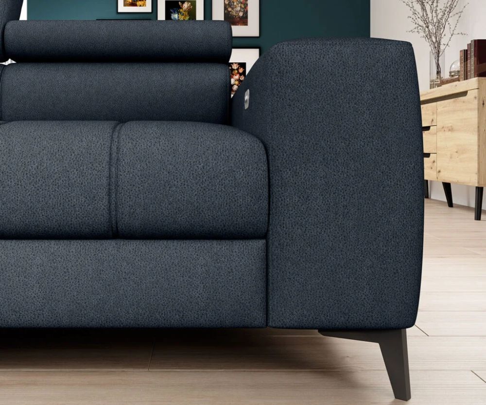 Wbudowany pojemnik na pościel ułatwia przechowywanie koców czy poduszek, a innowacyjna ładowarka indukcyjna w podłokietniku to nowoczesny akcent, który pozwala ładować telefon bez kabli – zawsze pod ręką, zawsze wygodnie.