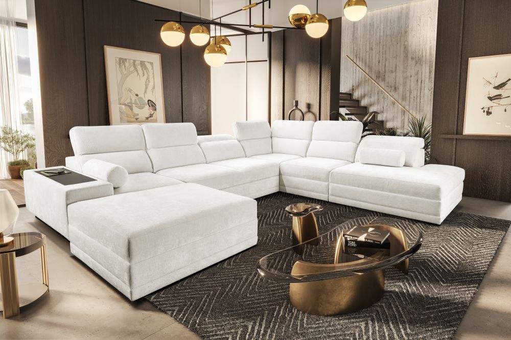 Personalizacja pozwala dopasować narożnik do własnych potrzeb. Możesz wybrać tkaninę premium z dostępnych wzorników, zdecydować o kolorze barku oraz ładowarki, a także wybrać wykonanie siedzisk na ekskluzywnej piance HR. Do wyboru pozostaje również strona narożnika – lewostronna lub prawostronna.