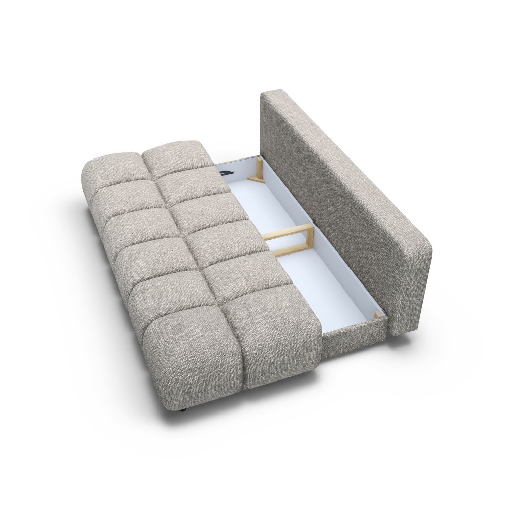 Funkcja spania typu DL pozwala w szybki i wygodny sposób przekształcić sofę w komfortowe łóżko o dużej powierzchni. To praktyczne rozwiązanie sprawia, że sofa BALTICA doskonale sprawdzi się w mniejszych mieszkaniach, kawalerkach czy pokojach gościnnych. Dodatkowy pojemnik na pościel umożliwia wygodne przechowywanie, pomagając utrzymać porządek w przestrzeni.