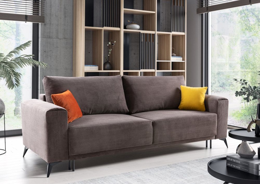 Zastosowanie sprężyn falistych w połączeniu z elastyczną pianką tapicerską gwarantuje wysoki komfort siedzenia i spania, a solidna konstrukcja z litego drewna zapewnia długowieczność mebla. Funkcja spania codziennego oraz praktyczny pojemnik na pościel sprawiają, że sofa FLUX jest niezwykle funkcjonalnym rozwiązaniem do domu lub mieszkania.