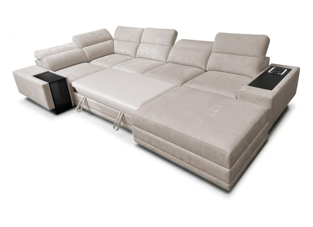 Sofa narożna U rozkładana z podnóżkiem barkiem i ładowaniem indukcyjnym ASTON 4 MIX