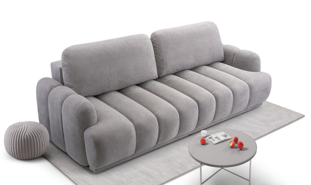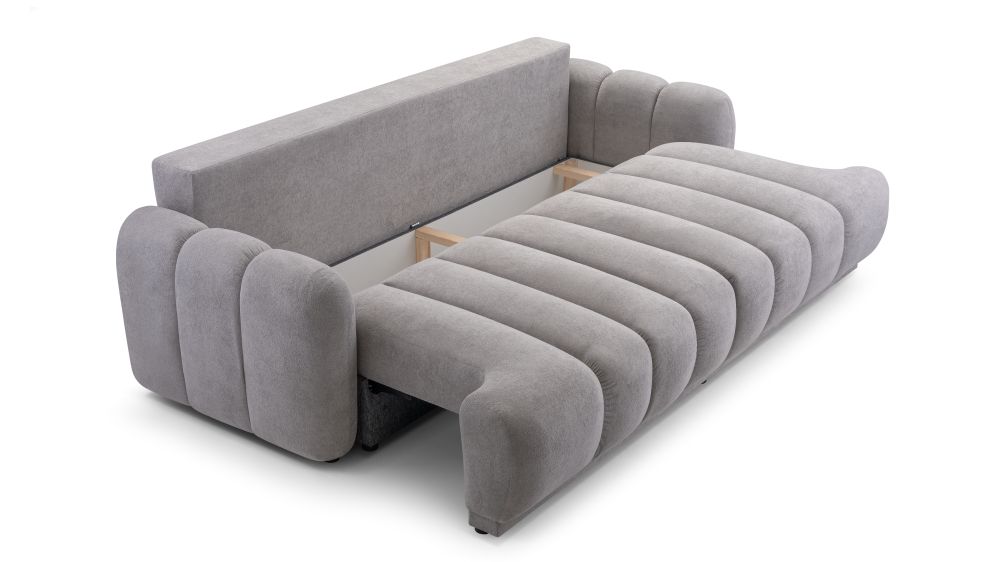 Przecudna sofa z funkcją spania na sprężynach DAFNE to idealne rozwiązanie dla osób, które cenią połączenie wyjątkowego designu, komfortu oraz funkcjonalności w jednym meblu. Ten nowoczesny model wyróżnia się modnymi, obłymi kształtami oraz efektownym falowanym siedziskiem, które nadaje wnętrzu lekkości i elegancji. Sofa DAFNE doskonale sprawdzi się zarówno w salonie, jak i jako wygodne miejsce do codziennego spania.