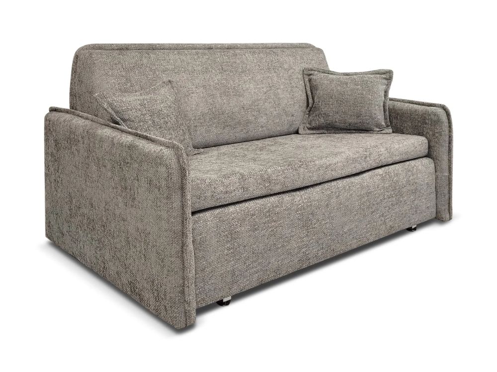 Wypełnienie z wysokogatunkowej pianki zapewnia odpowiednią elastyczność oraz komfort zarówno podczas siedzenia, jak i snu. Gruba poduszka siedziskowa zwiększa wygodę użytkowania, a dwie poduszki ozdobne nadają całości przytulnego charakteru. Ozdobna lamówka podkreśla staranność wykonania i elegancki styl mebla.