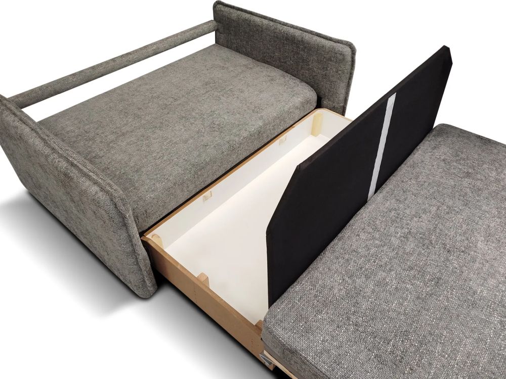 Model OHIO został wyposażony w funkcję spania typu wózek, która umożliwia szybkie i bezproblemowe rozłożenie powierzchni do spania. To niezwykle wygodne rozwiązanie, które pozwala w kilka chwil zamienić sofkę w komfortowe miejsce noclegowe o dużej powierzchni. Dodatkowy pojemnik na pościel ułatwia przechowywanie kołdry i poduszek, pomagając utrzymać porządek w pomieszczeniu.