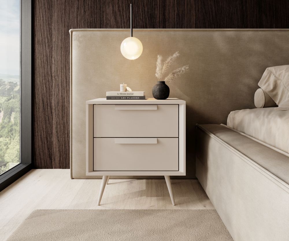 Stolik nocny w kolorze kaszmiru SATIN to elegancki i funkcjonalny mebel, który doskonale uzupełni nowoczesną sypialnię. Subtelny odcień kaszmiru wpisuje się w aktualne trendy wnętrzarskie, wprowadzając do przestrzeni harmonię, lekkość i ponadczasowy styl. Dzięki uniwersalnej kolorystyce stolik nocny SATIN świetnie komponuje się zarówno z jasnymi, jak i ciemniejszymi aranżacjami, tworząc spójną i przytulną atmosferę.