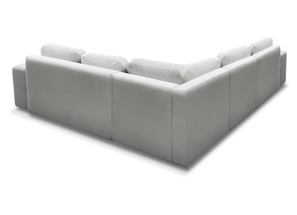 Superkomfortowy narożnik MOLINA 3 przyciąga uwagę elegancką formą i symetrycznym kształtem, który doskonale wpisuje się zarówno w przestronne salony, jak i nowoczesne wnętrza otwarte na kuchnię czy jadalnię. Wyposażony w 6 dużych poduch oparciowych, zapewnia maksymalną wygodę siedzenia i codziennego wypoczynku, a miękkie, ale sprężyste siedzisko zbudowane na sprężynach falistych i piance T-30 gwarantuje trwałość oraz komfort użytkowania przez lata.