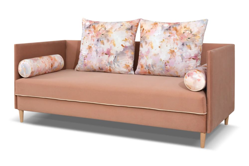 To mebel o uniwersalnej stronie, co oznacza, że bez problemu dopasujesz go do układu swojego wnętrza. Tył tapicerowany tkaniną techniczną pozwala na ustawienie tapczanu przy ścianie, a solidny stelaż z płyty meblowej i litego drewna zapewnia stabilność i wieloletnią trwałość. Drewniane nóżki w kolorze buk (jak na zdjęciu) dodają lekkości i naturalnego akcentu.