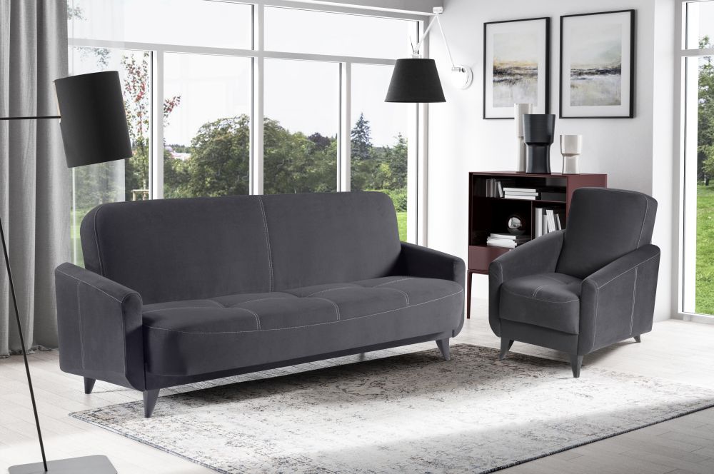 Model ten doskonale sprawdzi się jako wersalka do codziennego spania. Praktyczny system rozkładania „klick-klack” pozwala na szybkie i bezproblemowe przekształcenie jej w łóżko, a pojemnik na pościel ułatwia utrzymanie porządku i oszczędność miejsca. To rozwiązanie idealne zarówno do mniejszych mieszkań, jak i przestronnych wnętrz.