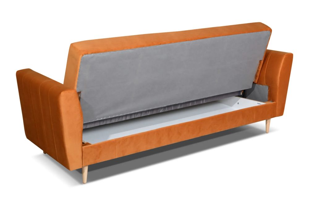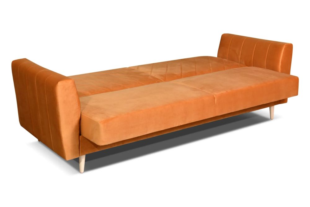 Funkcja spania sprawia, że w kilka chwil zamienisz wygodną wersalkę w komfortowe łóżko o dużej powierzchni. Dodatkowym atutem jest praktyczny pojemnik na pościel, który ułatwia przechowywanie i pomaga utrzymać porządek w pomieszczeniu.
