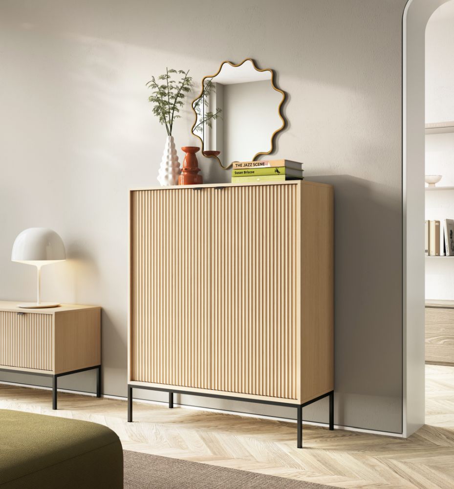 Wysoka komoda NEMESIS to nie tylko stylowa dekoracja – to przede wszystkim funkcjonalny mebel, który skutecznie zadba o porządek. Dzięki przemyślanej konstrukcji pomieści odzież, dokumenty, dodatki i wiele innych domowych akcesoriów, oferując wygodę i organizację w najlepszym wydaniu.