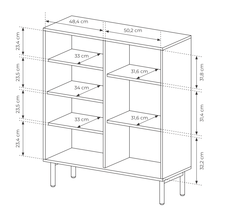 Wysoka komoda dekor dąb cremona 103 cm TATJANA