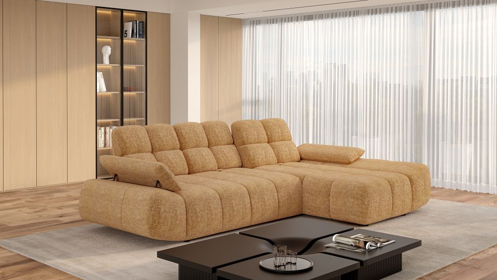 Narożnik premium z regulacją głębokości siedzisk MELLARO 1 to doskonały wybór dla osób, które oczekują od mebli czegoś więcej niż tylko podstawowej funkcjonalności. To propozycja stworzona z myślą o nowoczesnych wnętrzach, gdzie liczy się zarówno estetyka, jak i komfort codziennego użytkowania. Dzięki swojej zgrabnej, minimalistycznej formie narożnik idealnie wpisuje się w aktualne trendy aranżacyjne, podkreślając charakter salonu i nadając mu elegancki, a jednocześnie przytulny klimat.